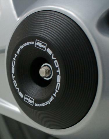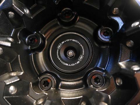 Evotech Performance front spindle bobbins are retained by roll threaded stainless steel spindles for increased strength.