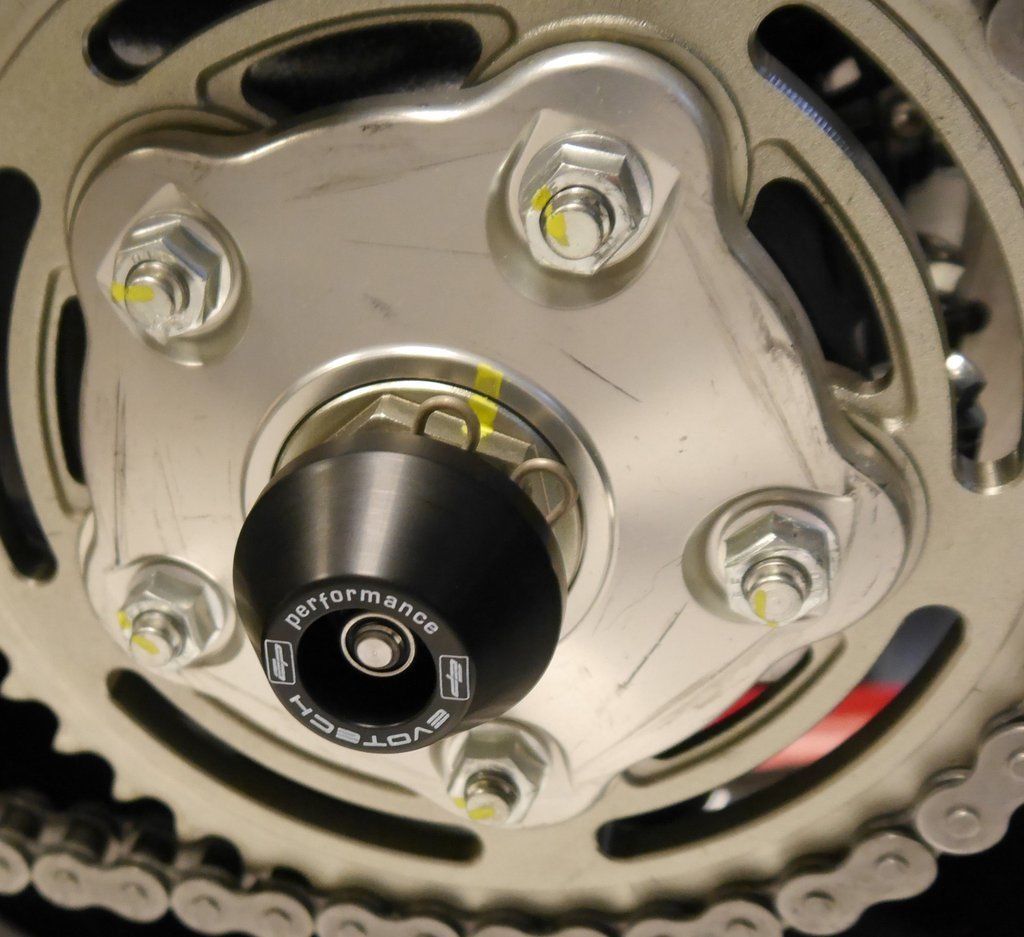 Evotech’s Ducati rear spindle protector bobbins are incredibly easy to fit and are retained by stainless steel spindles and stainless nyloc nuts, for added security.