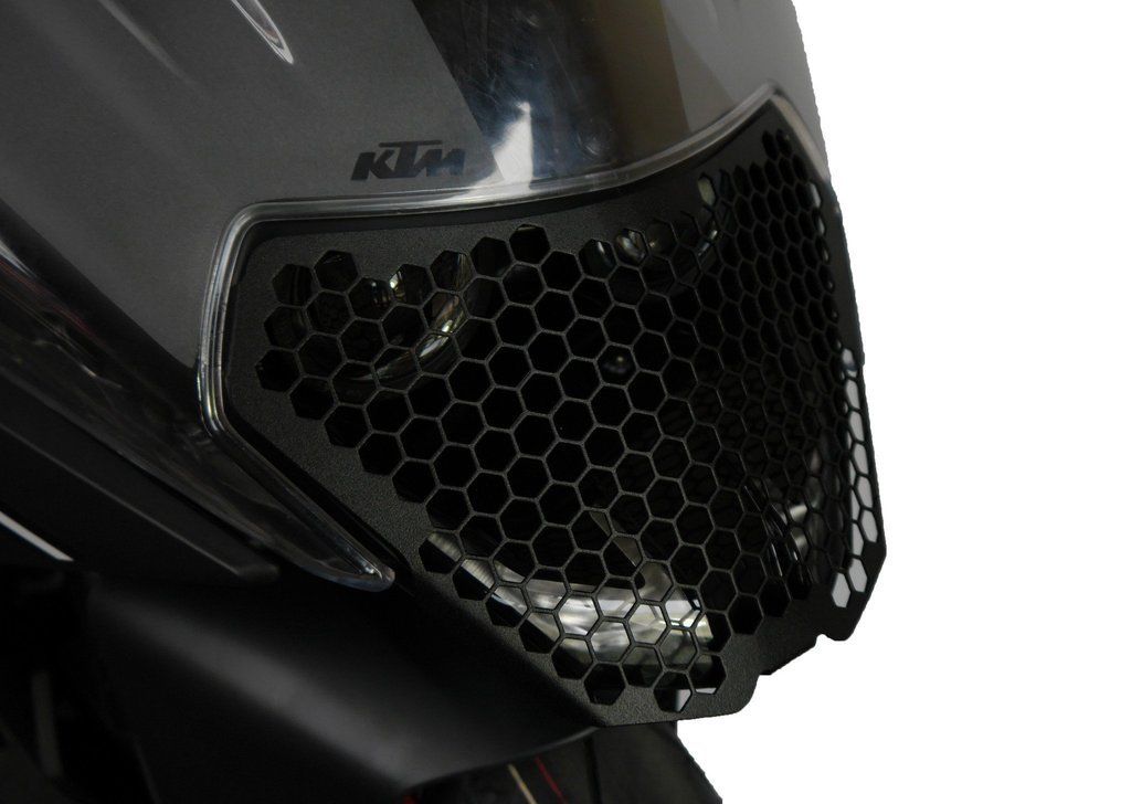 - Evotech Performance headlight guards fit to the bikes existing mounting points